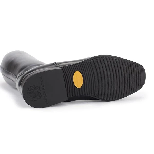 Alberto Fasciani is a very technical jumping boot made in soft natural calfskin. It features a rear zip and elastic laces on the instep. The inner part is in a special elastic textile and elastic grip for a better fit. Finished with an ornamental brouge and logo embossed on top of the leg. Made in black hand-polished calfskin and adorned with Swarosky® crystal.